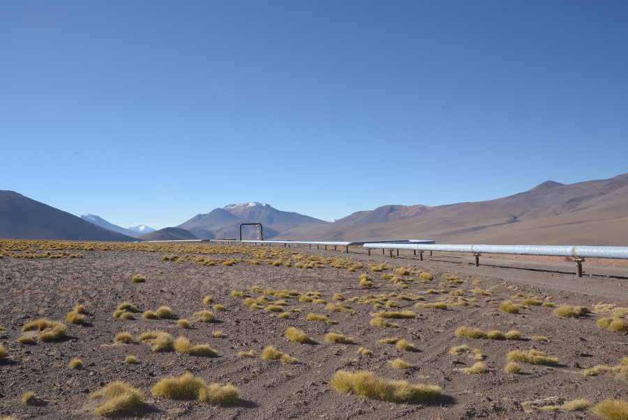 Construcción y Montaje Electro-Mecánico del Sistema de Interconexión entre los Diferentes Pozos y la Planta de Generación Geotermica de 50MW. Consiste en la Construcción de las Estaciones de Separación de Sólidos, Estación de Reinyección y Bombeo de Condensados más 15km de pipeline de conección entre la Planta y 6 Pozos de Extracción y Reinyección. Obra ejecutada exitosamente en sector de Ollagüe, con 400.000 Horas Hombre de trabajadores a 4.600 msnm, en condiciones de alta cordillera con bajas termperaturas y fuertes vientos.